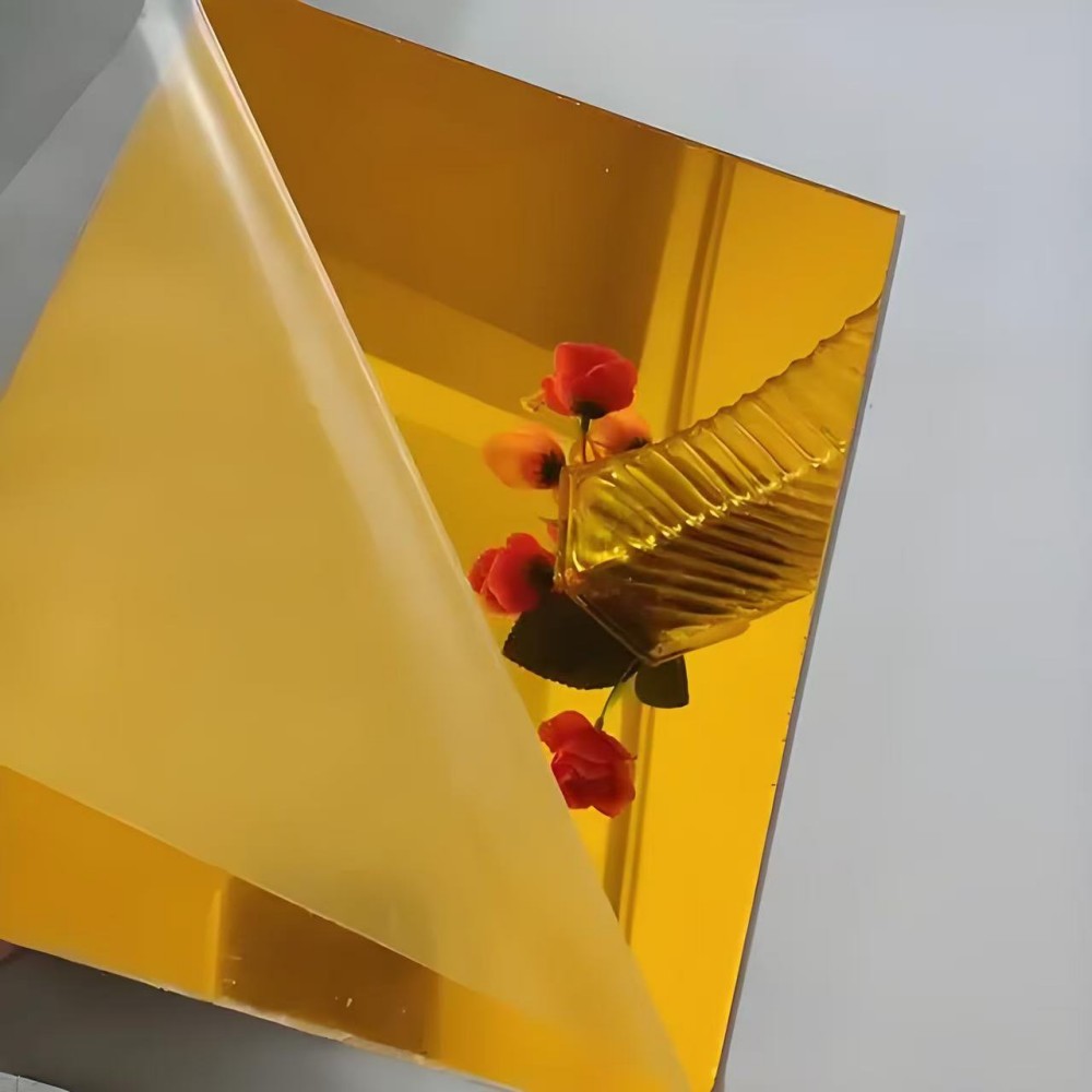 Éasca le Próiseáil:Is féidir le leathán aicrileach scáthán óir a bheith gearrtha léasair, CNC-greanta, agus te-lúbtha, ag tairiscint solúbthacht próiseála an-ard.